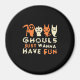 Um design de slogan engraçado com "Ghouls Só Quer Se Divertir." Luz e espirituosa, feita para amantes do humor sazonal.