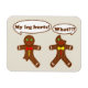 "Minha perna dói" - "O quê?" Engraçado pães-de-gengibre em paródia, paródia, aos coelhos coelhos que dizem "Meu bumbum dói". Bela design gráfica de pão de Natal, masculina. Com um fundo verde claro que pode ser alterado para qualquer cor.