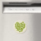 Este adorável coração verde e folheado é formado por formas estilizadas de folhas de gingko.
