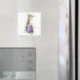 Uma renderização brilhante e colorida de uma girafa em púrpuras e amarelos.