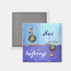 Animal Parade Holiday Giraffe está ficando festiva, toda esfolada em um chapéu vermelho de Papai Noel e uma coroa de férias da frente e atrás com planos de fundo azul texturizados. Marque você lavador de louça limpo (cabeças) ou sujo (caudas) e nunca mais fique confuso sobre seu ciclo de lavagem de louça.