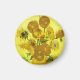 Girassóis Vincent van Gogh. A vida ainda é amarela. Um buquê brilhante de flores de girassol fica em um vaso. Reprodução de famosas imagens de arte no dominio público.
