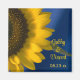 Personalize o Sunflower Amarelo bonito no Blue Wedding Magnet com os nomes pessoais da noiva e do noivo e sua data de cerimônia de verão ou casamento de outono. Crie um presente de casamento personalizado elegante, imã salve a data ou chá de panela único. Este elegante ímã de casamento florescente apresenta uma fotografia floral de um florescimento amarelo e uma folha verde num fundo azul.