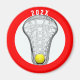 A equipe de Lacrosse guarda um presente de guarda-salvamento com o lax stick feminino em fundo vermelho. Editar texto para adicionar o ano.