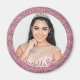 Girly Blush Pink | Rosa Dourado Glitter Photo Magnet com falso brilho rosa e espaço para sua foto e texto. Excelente para quinceaneras ou aniversários!
