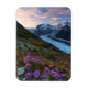 Esta foto mostra flores silvestres em rochas com glaciar Monte Rosa em fundo, Zermatt, cantão de Valais, Suiça.