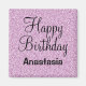 Magneta personalizada e brilho Feliz de Aniversário com um fundo brilhante roxo e um escrevendo preto elegante. Você pode adicionar facilmente o nome de sua escolha e alterar a cor e a fonte do nome usando a opção personalizar!
