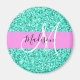 Íman Glam Pink Turquoise Glitter Sparkles Nome do Monog