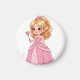 Princesa de chibi bonita com um vestido brilhante de bola rosa, coroa brilhante, cabelo louro longo, segurando uma varinha cintilante, contorno brilhante de adesivo.