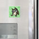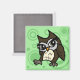 Estilo de desenho animado bonito Ilustração de coruja com ímã quadrado de fundo de padrão circular. O retorno pode ser personalizado para uma cor sólida de sua escolha.
