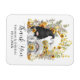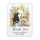 Obrigado de casamento personalizado, o seu imã favorece os seus hóspedes, apresentando uma noiva e um gnomo de noiva e uma ilustração de arco floral de girassol. Edite o modelo com uma data e os nomes dos recém-casados.