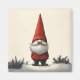 Uma ilustração encantadora de um gnomo festivo vestido com um chapéu e casaco vibrante vermelho, parado numa paisagem serena de neve. A barba branca longa do gnomo e o nariz branco espiam por baixo do chapéu alto e pontiagudo, evocando uma sensação de alegria de férias e folclore nórdico.