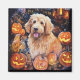 Íman Goldendoodle do Halloween Com Pumpkins Assustado