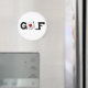 Um bom design de golfe com um grande texto preto que diz "Golf" com o "o" sendo uma bola de golfe, o "l" sendo um clube de golfe! Este design de golfe único pode ser encontrado em T-shirts de golfe, canecas, sacos de tote, cartões, adesivos, chaveiros e outros itens.