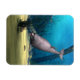Renderização digital 3D de um golfinho fofo sobre fundo oceânico de fantasia azul