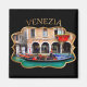 Gôndolas Elegante estacionadas pela costa, flutuando pacificamente na água azul num pequeno canal no distrito de Cannaregio, de Veneza, Itália.