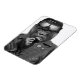 Esta design apresenta um gorila vestido com uma jaqueta de couro, óculos e capacete.