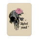 Esta ilustração retrógrada, moderna e única ao estilo do gótico de um crânio com uma rosa rosa rosa apresenta a frase artística "Alma Rebelde". É perfeito para amantes do gótico para o Halloween, o Dia dos Mortos, ou apenas para dias regulares.