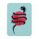 Íman legal de dragão com uma ilustração digital de um monstro - quimera entre um dragão e um cobra com picos em todo o corpo enrolados em torno de uma bola vermelha.