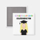 Ilustração do formando feminino com texto colorido lendo "Parabéns!"
