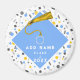 Pequena oferta de graduação criativa e a favor do partido formando apresentando boné azul-claro com fita de ouro sobre fundo de confete. Editar texto para adicionar o nome do formando.