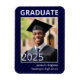 Imagem Azul de Anúncio de Graduação de Foto. Este imã será uma pequena lembrança divertida para você e para o seu. Pegue um monte e passe-os para amigos e família. Este ímã tem o tema azul e diz (e é tudo editável): Formando 2025 Name School ******************************************* Parabéns Formando!