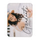 Comemore o formando com nosso ímã de graduação em foto na moda. O ímã de graduação exibe a foto do formando com "Formando" em uma cobertura preta de script de caligrafia moderna. Personalize o ímã de graduação moderno adicionando o nome do formando, o nome da escola e o ano de graduação. O design é perfeito para segundos graus e formandos universitários.