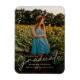 Este anúncio moderno e elegante da graduação em na moda, apresenta uma camada de formando de script e um nome personalizável, escola e foto na frente. A parte de trás é magnética. Uma forma excelente de mostrar seu formando.