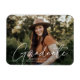 Comemore o formando com nosso ímã de graduação em foto na moda. O ímã de graduação exibe a foto do formando com "Formando" em uma cobertura branca de script de caligrafia moderna. Personalize o ímã de graduação moderno adicionando o nome do formando, o nome da escola e o ano de graduação. O design é perfeito para segundos graus e formandos universitários.