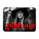 Ímanes de graduação na moda com a foto horizontal do formando com "formando" em letras vermelho em negrito. Personalize o ímã de graduação de fotos adicionando o nome do formando, o ano de graduação e a escola.