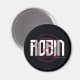 Este gráfico oferece uma reinterpretação contemporânea do emblema Robin, misturando elementos clássicos com sensibilidades modernas de design. O logótipo centra-se numa representação em negrito e geométrica da palavra "ROBIN", definida em branco estendido contra um fundo preto profundo, encapsulada num círculo rosa marcante que adiciona um contraste visual dinâmico. O círculo não só enquadra o texto como também o quebra, sugerindo o surgimento de Robin da sombra de Batman para estabelecer sua própria identidade. O uso do rosa acrescenta uma reviravolta inesperada, dando uma vibração nova e moderna enquanto ainda presta homenagem ao tradicional vermelho associado a Robin. Este design capta a essência da evolução de Robin como um personagem, misturando seu legado heroico com uma estética urbana elegante e adequada para uma nova geração de fãs.