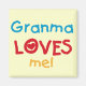 Granma me ama T-shirts, fatos-chave, cartas, bolsas e outros itens com design de texto azul, vermelho e amarelo.