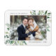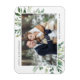 Nosso elegante imã foto do Winter Greenery exibe sua foto emoldurada por folhas verdes de aquarela e folhagem com "Joyful & Triumphant" ou uma saudação personalizada, seu nome e ano.