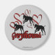 Silhueta de galgos e ímã de geladeira de corações vermelhos. É uma maneira deliciosa de postar as suas notas e mensagens. Você pode personalizar este ímã com qualquer texto que desejar, clicando em Personalizar. Esta imagem está disponível em muitos produtos na minha galeria, em "Smilin' Eyes Treasures".