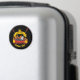 Churrasco sobre carvão inflamável, faixa de rolagem com texto personalizado sobre garfo e espátula.