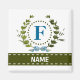 Uma delicada grinalda de hera com um arco azul listrado é sobreposta a um fundo branco fresco. O design apropriado para casamento apresenta o monograma "F" em azul. O ímã pode ser personalizado com qualquer nome sobre a faixa de fita verde. Dica de design: Para a fonte mostrada aqui, use letras maiúsculas para o nome.