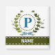 Uma delicada grinalda de hera com um laço listrado azul é sobreposta a um fundo branco fresco. O design apropriado para casamento apresenta o monograma "P" em azul. O ímã pode ser personalizado com qualquer nome sobre a faixa de fita verde. Dica de design: Para a fonte mostrada aqui, use letras maiúsculas para o nome.