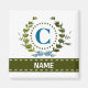 Uma delicada grinalda de hera com um laço listrado azul é sobreposta a um fundo branco fresco. O design apropriado para casamento apresenta o monograma "C" em azul. O ímã pode ser personalizado com qualquer nome sobre a faixa de fita verde. Dica de design: Para a fonte mostrada aqui, use letras maiúsculas para o nome.