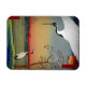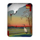 Um par de guindastes junto ao lago e à cerejeira. Trabalho de arte de colheita colorida de um impressão de madeira.