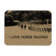Os cavalos estão indo para casa na lama nesta design de foto esticada de uma pista desleixada. Cavalos de corrida cuidadosamente criados estão à frente do trecho na pista de corrida do Parque Belmont, em Elmont, NY.