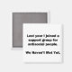 Para o amante sarcasmo em todos nós. Confira esta testemunha: "No ano passado eu me juntei a um grupo de apoio para Pessoas antissociais. Ainda não conhecemos o design do roupa, canecas, mousepads, botões e outros presentes únicos.