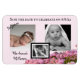 O design cor-de-rosa de celebração floral selvagem. Os pinks do mar ou as flores da fossa crescem sobre penhascos em lindas costas. Assim como uma relação florescente cresce no casamento. Personalize este lembrete de imã de geladeira divertida com fotos da criança do bairro da noiva e do noivo, e uma fotografia de casal ou noivado. A pintura original de aglomerado de pinças-do-mar está na frente, pequenas pinças moles e pétalas douradas com caules verdes. Há uma suíte de casamento inteira baseada na flor silvestre rosa, ou na coleção de flores cor-de-rosa.