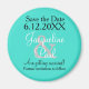 Turquesa com texto branco e preto. Personalize estas opções para Salvar a data com os primeiros nomes e a data de casamento da noiva e do noivo. Encantado enviar aos convidados do casamento para colocar na geladeira ou outra superfície magnética como um bom lembrete do próximo casamento. Designs de TamiraZDescarametria.