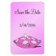 Adicione sua data especial de conto de fadas a esses elegantes e personalizáveis magnatas da festa ou do noivado Save the Date com arte vintage do escorregador de vidro da Cinderela em um travesseiro. Sobre uma princesa rosa