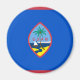 A bandeira territorial é azul escuro, com uma borda vermelha estreita de todos os lados (a fronteira foi uma adição posterior). No centro da bandeira está o casaco de armas; um emblema em forma de amêndoa, que retrata uma proa navegando na Baía de Agana, perto de Hagåtña, e o GUAM colorido em letras vermelhas. A forma do emblema lembra as pedras usadas pelos ancestrais dos ilhéus. A paisagem no fundo mostra o penhasco de Punta-Dos Amantes em Guam.
