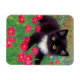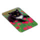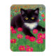 Magnet com um gato Gustav Klimt tuxedo! Este adorável gatinho preto e branco se senta num campo de flores vermelhas, azuis, brancas e laranja. Um presente incrível para amantes de gatos e entusiastas de arte austríacos!