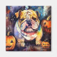 Íman Halloween Bulldog Com Pumpkins Assustado