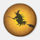 Dê a sua geladeira ou qualquer superfície de metal um pouco de halloween com este delicioso imã de bruxa voadora de Halloween. Esta silhueta de uma bruxa cavalgando sua vassoura vai rir para os outros e mostrar que você está no espírito do feriado. Personalize seu ímã adicionando seu nome ou qualquer texto que você escolher. A Bruxa de Halloween está disponível com ou sem fundo luar brilhante.