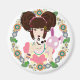 Yuriko, garota de Decora Harajuku, com uma fronteira redonda de flores vintage. A cor de fundo é personalizável.