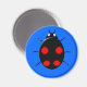 Um ímã com uma pata-viva preta com quatro manchas vermelhas irregulares nas costas, seis pernas e duas manchas brancas que se parecem com os olhos na frente da cabeça. Originalmente uma espécie asiática que vive e cria na Europa e na América. Foi colocada sobre um fundo azul, mas também parece excelente em relação a outros fundos de cor. Você pode alterar a cor de fundo e outros aspectos do design clicando no botão personalizá-lo.